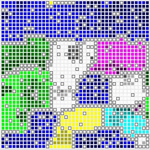 The keen observer will note that there is no limit to the number of species, or Colors, on the board. I ran out of time to take a 40x40 pixel image and loading that into the game. I’m pretty sure this is trivial to pull off with a little more time, but unfortunately I don’t have any. Pull Requests Welcome!