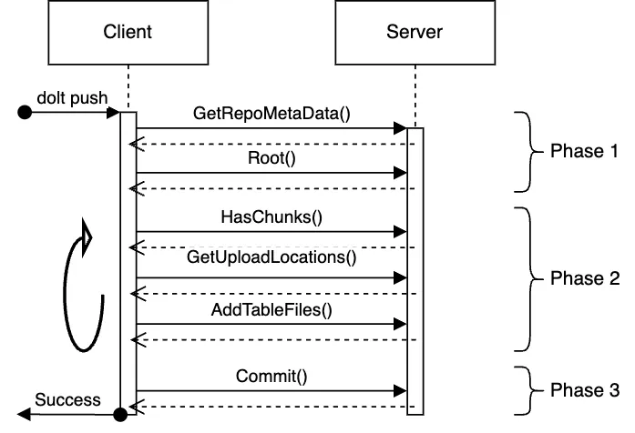 - Phase 2: Client inspects the Server state and what content it contains then follows up with uploads which get the data the client needs onto the server. There can be any number of calls in this sequence. This loop continues until the client is satisfied that the server has all information required for the write.